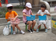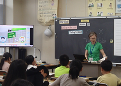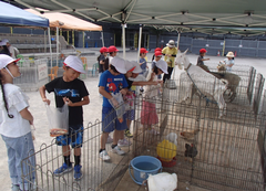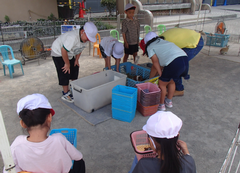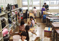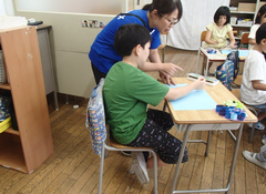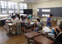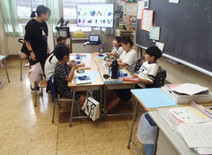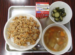 今日の朝は、多摩警察の方と「おやじの会」の方が、子どもたちの登校を見守ってくださいました。いつもありがとうございます。1年生が音楽の授業をしていました。エアコンの不調で3階で学習していたクラスも2階に戻ってきました。2年生は紙版画が始まりました。3年生は「空き容器の変身」に取り組んでいます。習字は「木」を書いていました。6年生の図工は「音のする絵」です。今日の一品は「トンカチのたたく音」と「コップにそそぐ清らかな音」です。5年生は社会科「食料生産」の畜産物を取り上げて学習していました。「野菜」「果物」「畜産物」「水産物」から1つ取り上げて学習することになっています。理科は「台風と気象情報」です。近頃の大雨や台風には、悩まされています。学校では、教育委員会からの連絡にプラスして、様々な種類の「雨雲レーダー」等を参考にして、下校の対応を考えています。そういう意味で、毎日の生活に、気象情報はなくてはならないものになっていますね。今日の給食は「麦ごはん・ホイコーロー丼・ニラ玉スープ・牛乳」です。