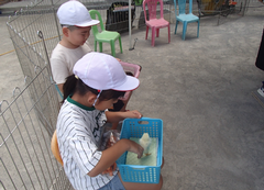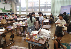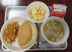 今日の給食は「ロールパン・ミートポテトのチーズ焼き・コーンソテー・湘南ゴールドゼリー・牛乳」です。今日は、アリーナで音楽朝会がありました。暑さも和らぎ過ごしやすい日になりました。アリーナでも全校児童が集まれるようになりました。季節の移り変わりを感じますね。採用2年目の2人の先生の研究授業がありました。講師の先生に授業参観後、指導していただきました。校庭では、たくさんのクラスが出て活動していました。5年生はアリーナでバスケットボールをしていました。3年生は「空き容器の変身」が出来上がってきています。自信作を「見て見て!」といい、私に見せて説明もしてくれました。2年生は1年生との交流のおもちゃを作っていました。みんな楽しそうでした。6年生はキャリア学習と歴史の学習をしていました。4年生は社会科のまとめの学習をグループで行っていました。