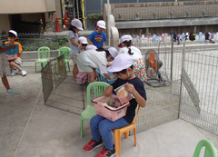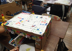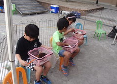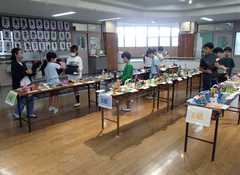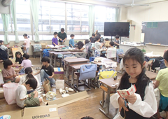 今日は、1年生の「移動動物園」がありました。クラスごとに動物に親しみました。自宅から持ってきた「えさ」をやり、とても楽しく活動していました。ポニーにも乗りました。2年生は「うごくおもちゃ」づくりをしていました。各学年、明日から面談があるので、図工の作品などの展示の準備をしていました。4年生は「ギコギコトントンクリエーター」3年生は「空き容器の変身」です。今日の一品は4年生「カラフルマイホーム」3年生「貯金箱と鉛筆立て」です。英語の授業も教室整備が終わり、「英語教室」で授業が行えるようになりました。今日は6年生がアリーナでバスケットボールの試合をしていました。今日の給食は「カレーサンドパン・ビーンズサンド・スコッチブロス・じゃがいものからあげ・牛乳」です。