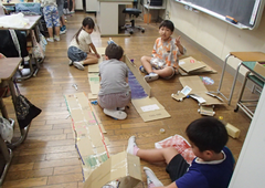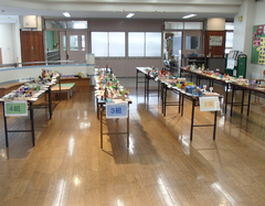 今日も過ごしやすい日でした。校庭はクレーン車が入り、ますます狭くなっています。今日の給食は「ごはん・豚汁・もやし炒め・ちくわの磯辺揚げ・牛乳」です。1年生は、家から持ってきた、たくさんの箱を使って学習していました。箱の形を鉛筆でなぞって描いて、できた形についてみんなで交流していました。国語は「うみのかくれんぼ」を音読していました。2年生は一人ひとりの作品が集まって、街ができていました。3年生は前期の振り返りを書いていました。図工の「空き容器の変身」も完成して、廊下に飾られていました。4年生は社会科の学習のまとめをグループで教室と多目を使ってやっていました。5年生は自然教室で収集した、「まつぼっくりや栗」などを使って、素敵な飾りを作っていました。今日の一品は「こっそり生きてる自然」です。題名がユニークです。6年生はアリーナでバスケットボールをしていました。サポート級はみんなで「秋の飾り」を作っていました。