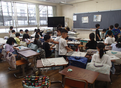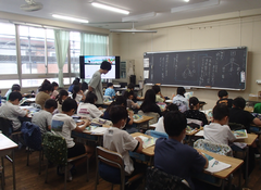 今日で、9月で終わりですね。今日の給食は「麦ごはん・高野豆腐のそぼろごはん・けんちん汁・ゴマきゅうり・牛乳」です。今日から個人面談が始まります。図工の作品などが展示されていますので、ぜひ御覧ください。4年生が図工の友だちの作品を見て、鑑賞をしていました。1年生は、虫さがしをするために校庭に出ていきました。せまい校庭で、虫もなかなか見つからないと思いますが、季節は「虫となかよし」になれる秋ですね。2年生は「うごくおもちゃ」や「紙版画」に一生懸命でした。国語は4年生「ごんぎつね」、3年生「ちいちゃんのかげおくり」長く教科書に掲載されている「名作」です。校庭の体育は1年生は「的あて」3年生は「かけっこ」です。3年生は音楽で「リコーダー、鍵盤ハーミニカ」の練習を頑張っていました。サポート級は「秋の果物」ぶどうの作品に取り組んでいました。色や形の工夫があり、どれも素敵です。みんなの完成が楽しみです。