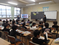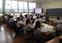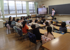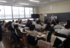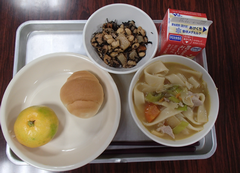 今日は秋らしい涼しい天気になりました。半袖でも全然平気な子、半袖で登校して寒いと言いながら校門をくぐった子、長袖の上着を羽織っている子など、様々でした。今日の給食は「ターメリックライス・チキンクリームライス・野菜ソテー・牛乳」です。今日は「不審者侵入訓練」を2時間目に行いました。詳しく日時等は、子どもに知らせていない状況での訓練でしたが、みんな先生の指示にしたがって訓練に参加することができていました。6年生は習字「ひまわり」と図工「水の流れ 水の形」です。全員の作品が展示されるまで、もう少し時間がかかりそうです。廊下には「中野島学年フェスタ」のポスターが貼られていました。1年生は国語「くじらぐも」、算数「たし算」です。3年生は国語で説明文の順番を並べ替える活動をしていました。みんな色々な活動場所で真剣に考えていました。音楽は中小ステージの担当楽器のパート練習をしていました。5年生はとび箱です。自分の課題の場で意欲的に練習していました。4年生は校庭で「フラッグフットボール」の体験学習をしていました。職員玄関には、昨日、活動した華道部の花が飾られていました。