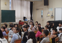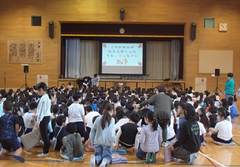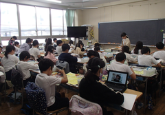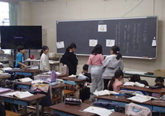 今日の給食は「サンドパン・てりやきハンバーガー・コンソメスープ・こふきいも・牛乳」です。朝はアリーナで音楽朝会がありました。今月の歌「夢の世界」を全校で歌いました。2年生は、生活科の1年生招待の準備や紙版画、音楽ではギガ端末でリズムづくりをしていました。施設探検では、多摩図書館訪問の確認をしていました。1年生は「くじらぐも」です。音読も上手になってきました。5年生は動画を見ながら、アリーナでとび箱運動をしていました。国語では、4年生は、物語「ごんぎつね」、3年生は、説明文「すがたをかえる大豆」です。言葉、段落、つなぎ言葉など、言葉にこだわり、読み取り、グループやクラスで交流していました。学習の深まりを感じました。5年生は理科「流れる水の働き」です。実験装置を作り、実際に水を流したのをみんなで見て、気づいたことを交流していました。