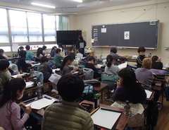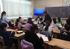手袋をして登校する子が増えてきました。でも、休み時間は外で元気に遊んでいる子が多かったです。今日の給食は「ごはん・タッカルビ・わかめとコーンのスープ・牛乳」です。タッカルビは新献立です。今日はアリーナで鑑賞教室がありました。午前と午後に分かれて鑑賞しました。「ㇲギテツ」さんという方のピアノとヴァイオリンの素敵な演奏を聴きました。聴くだけでなく観て楽しいコンサートでした。3年生は中小ステージの担当の楽器を学年で練習していました。5年生は自然教室の絵の続きに取り組んでいました。4年生と6年生の教室には、インターンシップの学生が来ました。将来、先生になるための勉強です。たくさん学んでほしいです。6年生の図工「水の流れ 水の形」、今日の一品は「南国と北極の海」です。2つに分けるアイデアがいいですね。