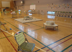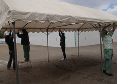 いよいよ明日は、「ふれあいまつりなかのしま」です。天気が心配です。晴れバージョンでやる予定でいますが、12時すぎ雨が降ってきました。校庭のテント5張はあっという間に完成しました。ありがとうございます。他の場所でも準備が着々と進んでいます。今日の給食は「ミニロールパン・ほうとう・五目豆・みかん・牛乳」です。3年生は英語の日でした。習字は「小」の清書を書いていました。道徳は「3人のしごと」です。小グループで考えを交流していました。4年生はごんぎつねの続きです。2年生は鍵盤ハーモニカの練習を頑張っていました。今日の6年生図工「水の流れ 水の形」の一品は「太陽にあたり光る水」です。形がとても素敵だと思いました。