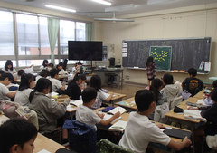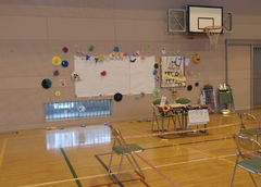 今週は、「ふれあいまつり」です。天気は曇りのようです。雨は降らないでほしいなあと願っています。せまい校庭を工夫して使い、良い1日になればと思っています。今日の給食は「ごはん・ちくわの蒲焼・豚汁・塩ダレキャベツ・牛乳」です。2年生がおもちゃ・ゲームのクラス間交流をしていました。6年生はアリーナでは「とび箱」、英語は、自分の作った原稿をもとに、発表会をしていました。どの子どももスラスラと英語でスピーチをしていました。学習の進みを感じました。中野島学年フェスタのプログラムがありました。後期も良い思い出をたくさん作ってほしいと思いました。3年生は理科「かげと太陽」です。みんな集中して学習していました。4年生は国語「ごんぎつね」の続きです。ノートに自分の考えを書いたり、教科書に書き込んだり、模造紙に線や言葉を記入したりと、いろいろな形態で学習していました。今日はクラブ活動の日です。事務室の前に花がありました。華道クラブの花です。毎回、生けた花は作品として教職員の玄関に飾られます。