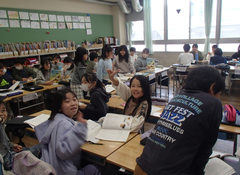 今日から11月になります。先週の金曜日の5時間目は、6年生が学年集会をしていました。「中野島学年フェスタ」として、子どもたちが中心になって運営していました。校庭に歓声が響いていました。今日は2年生の「図書館探検」、5年生の「オーケストラ鑑賞」があります。素晴らしい天気になってよかったです。今日の給食は「フィシュサンド・ホキフライ・コンソメスープ・カレーこふきいも・牛乳」です。6年生は国語「みんなで楽しく過ごすために」の学習の話し合い活動を進めていました。4年生は国語の説明文「未来につなぐ工芸品」を分析をしながら読みを深めていました。1年生は音楽で「聖者の行進」を鍵盤ハーミニカで演奏していました。2年生は「図書館探検」の準備をしていました。5年生は保健「けがの予防」、社会科は、森林の育成や保護に従事している人々の学習をしていました。3年生は理科「電気で明かりをつけよう」の実験をいろいろな場所でやっていました。