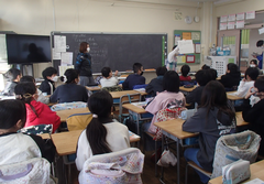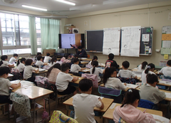 素晴らしい天気の1日でした。今日は4年生の「認知症サポーター」の体験学習がありました。認知症について理解を深めました。6年生は「キャリア教育」で6人の色々な職業の講師の方に来ていただき話をしていただきました。6年生もあと数年したら社会に出る子がいます。人生の先輩に話を聞き、将来の自分について考えるきっかけになればと思いました。アリーナではとび箱運動をしていました。1年生は今日から中小ステージの練習は始まりました。初めての中小ステージ、学年の合奏と歌を聴くのが楽しみです。2年生も自分のパートの練習を頑張っていました。3年生は「いろいろうつして」多色刷りに取る組んでいました。今日の給食は「ロールパン・豚肉のトマト煮・ベジタブルスープ・牛乳」です。保健室の掲示が変わりました。11月10日の「いいトイレ」にちなんだトイレや排便についての内容になっていました。