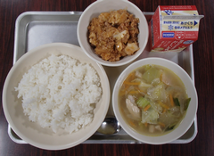 素晴らしい天気になりました。体育は、2年生「ボール投げゲーム」、3年生「ハンドボール」、6年生「リレー」、みんな元気に活動していました。しかし、週明けから「インフルエンザA型」による、欠席が多くなり、明日から3日間、学級閉鎖する学級がでてきました。学級閉鎖をするクラスはすでにメールを配信しています。土曜日の授業参観をどうするかについても今日中に決めたいと考えています。今日の給食は「ごはん・生揚げの四川煮・春雨の中華スープ・牛乳」です。4年生は県内の特色ある地域「箱根」、図工は、「忘れられない気持ち」の学習です。サポートは朝の会をしていました。5年生は家庭科で学んだ色々なことを復習しながら縫っていました。6年生は、自分の選んだ「動物」について調べていました。