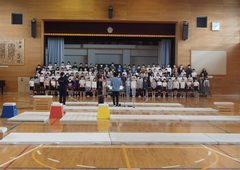 今日は素晴らしい天気になりました。中野島中学校から職業体験で、学校仕事について学ぶために中学生が来校しました。将来、働くということへの良いイメージをもってくれたらいいなあと思いました。2年生はアリーナでブレーブサンダースの体験学習を行いました。みんな楽しんで活動していました。3年生は重さの学習で、ぴったり1キログラムを目指して、色々な物の重さを量っていました。5年生は養護教諭の先生が「けがの防止」について授業をしていました。今日の給食は「白パン・ラザニア・キャベツのスープ煮・牛乳」です。