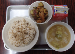 今日から3クラスが木曜日まで学級閉鎖となります。土曜日の授業参観も延期しました。11月15日(土曜日)は子どもたちだけの4時間授業となります。参観を予定して保護者の方に本当に申し訳なく思います。午後は令和8年度入学予定の子どもたちのための就学時健診があります。4クラスの予定です。来年度は、令和生まれの子どもが中野島小学校に入学してきます。令和もいつのまにか8年目かと思います。今日の給食は「ならちゃめし・ごましお・鶏肉とさつまいもの甘辛煮・味噌汁・牛乳」です。4年生と6年生が音楽の練習をしていました。11月28日は4年生の連合音楽会です。6年生は中小ステージの合奏の練習をしていました。3年生の音楽は、トランペットやトロンボーンを持ち、楽器に親しんでいました。体育は1年生がとび箱遊び、3年生はグループで「表現」、校庭では、4年生が高跳び、5年生がティーボールに取り組んでいました。4年生は学級目標の模造紙を完成させていました。図書室は、飾りと「ブック委員会」の本の紹介が素敵でした。