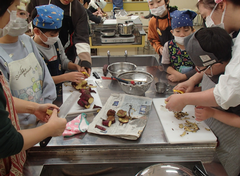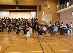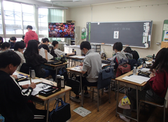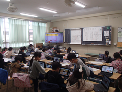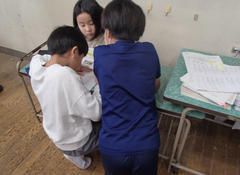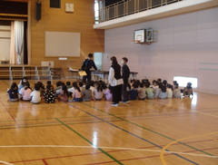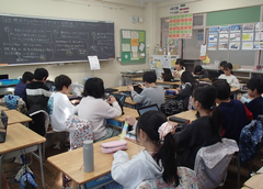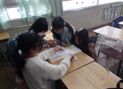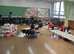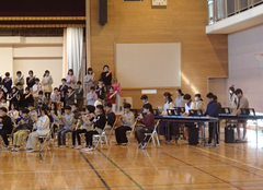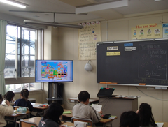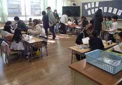 今日の給食は「白パン・いちごジャム・ボルシチ・野菜ソテー・牛乳」です。4年生は英語で地図を見て、場所を英語で言う活動をしていました。6年生はアリーナで「ドラゴンクエストメドレー」の演奏の練習をしていました。本番が楽しみです。2年生は手作り楽器を作っていました。とても楽しそうでした。1年生は算数「くらべかた」の学習です。自分の考えをノートに記入していました。その後、みんなで意見交流をしていました。
