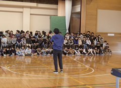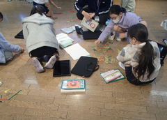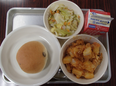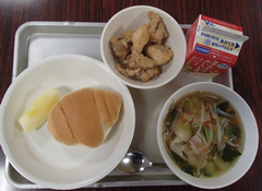 12月になりました。昨日は本校で「中野島オリンピック」がありました。中野島小、東菅小、下布田小、中野島中、カリタスの子どもたちが集まり、スポーツやゲーム、話し合いをしました。地域の交流が盛んになればと思っています。1年生、6年生がアリーナで中小ステージの練習をしていました。本番が12月16日なので、各学年準備を進めています。4年生は国語「友情のかべ新聞」を友だちと音読して交流していました。他のクラスでは社会科「横浜」の調べ学習をしていました。3年生は算数「三角形」の学習をしていました。どの学年も教室だけでなく、多目も工夫して使い学習しています。5年生は図工「紙から生まれる素敵なあかり」が展示されていました。全員が完成するのが楽しみです。今日の給食は「ロールパン・鶏肉のごま揚げ・ワンタンスープ・りんご・牛乳」です。