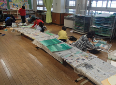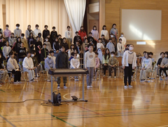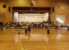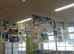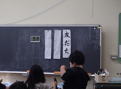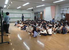 中小ステージの看板が出来上がりました。授業参観が延期になってしまったので、子どもたちの活躍をぜひ見に来ていただきたいと思います。お待ちしております。2年生がアリーナで練習していました。4年生は多目で、出演した連合音楽会のビデオをみんなで鑑賞していました。3年生も演出する飾り、小物の準備をしていました。4年生は道徳「生き物と機械」で命の大切さについて交流していました。他のクラスの社会科では、グループで、少人数で、1人でなど色々なやり方で調べたことを交流していました。6年生は習字で「友情」を書いていました。今日の給食は「ごはん・ふりかけ・味噌汁・すき焼き煮・牛乳」です。