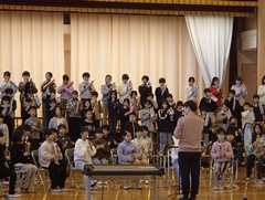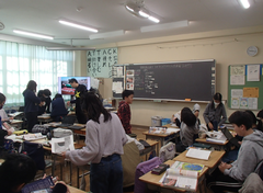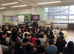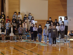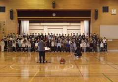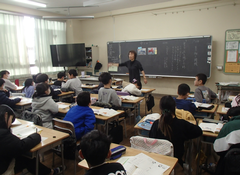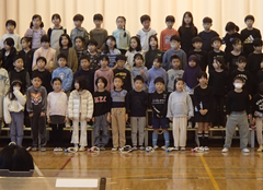 厳しい寒さですが、今週は天候に恵まれた1週間でした。しかし、青森では大きな地震が発生し、亡くなった方、様々な被害に遭われた方がいて、心が痛みます。今後の余震等の警戒もしていかなくてはと思いました。今日の給食は「ごはん・野菜スープ・豚肉と生揚げの炒め煮・みかん・牛乳」です。6年生の社会科の研究授業が午後あるので、今日は、掃除なしで下校となります。3年生は書き初めの「友だち」という字を書いていました。4年生は英語で好きな場所を伝えるという活動をしていました。社会科では、「なぜ横浜市では、多くの国際大会や国際会議を開催することができるのだろう」という問いで学習していました。今日は2年生と5年生がアリーナで中小ステージの練習をしていました。