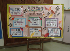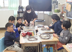 素晴らしい天気でしたが、寒さの厳しい1日でした。今日は、1年生の「わくわく秋あそびランド}がありました。1,2時間目は幼稚園・保育園の子どもたち、3,4時間目は保護者の方、たくさんのお客さんが来て、1年生はみんな「ニコニコ」の笑顔でした。サポート級は、さつまいもパーテイでした。いもだんごをみんなで作りました。私も食べましたが、とてもおいしかったです。4年生はアリーナで歌の練習をしていました。グリーンサークルさんにリースをいただいたので、校長室に飾りたいと思います。ありがとうございます。今日の給食は「ごはん・豚の肉ともやしのオイスター丼・わかめとコーンのスープ・川崎育ちのなしゼリー・牛乳」です。