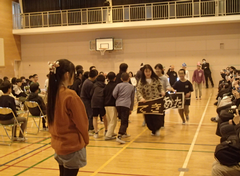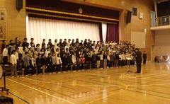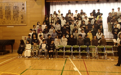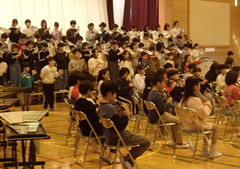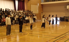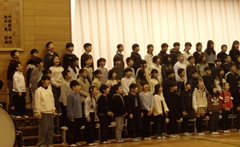 6年生は、中小ステージの日に職員室の壁に飾られている学年写真を撮影することになっています。給食の後、アリーナに集合して写真を撮影しました。職員室の壁の写真がまた1枚増えます。今日の給食は「ごはん・サバの塩焼き・味噌汁・五目豆・牛乳」です。今日は第2回の学校運営協議会があり、中休みに「中野島プロジェクト(NP)」の児童が校長室に来て、中野島小の色々な活動について委員さんに説明してくれました。運営協議会委員さんは、その後、4・5・6年の歌や合唱を参観されました。