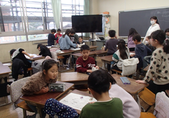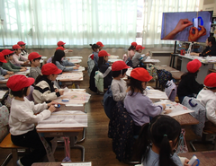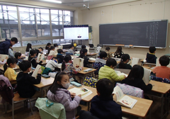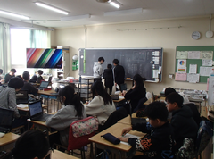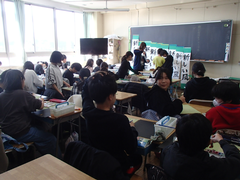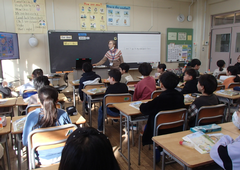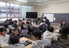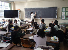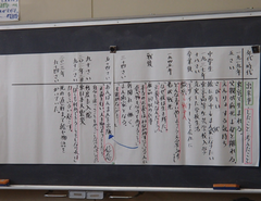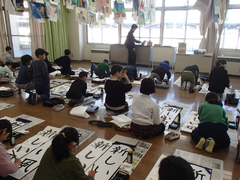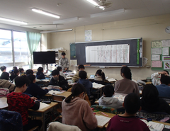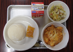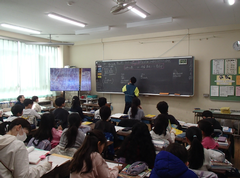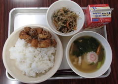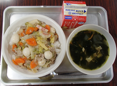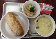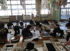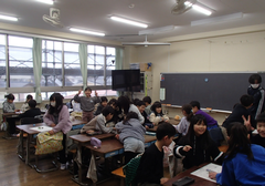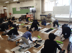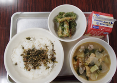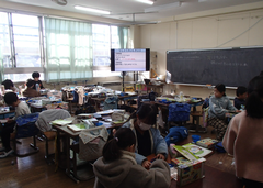 今日から給食が始まりました。「ごはん・ぶりの竜田揚げ・雑煮・もやしのうま煮・牛乳」です。校庭では、体育専科の先生が体育をしていました。午前中はほぼ日陰で寒いですが、元気に動き回っていました。サポートは12月から3月生まれの友だちの誕生会の話し合いをしていました。4年生は書き初め「明るい心」を書いていました。3年生は英語の日でした。他のクラスでは社会科「スーパーで働く人」、生活目標の「健康的な生活」について学習をしていました。