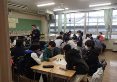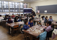 今日から学校が始まり、子どもたちの元気な声が戻ってきました。朝は、おやじの会の方が、子どもたちの登校を見守って下さいました。寒い中ありがとうございました。アリーナで朝会を行いました。今日時点では、インフルエンザで休んでいる子どもたちはわずかでした。今後の感染状況に注意して行きたいです。教室を回って見てみると、1年生は4月からの2年生に向けて、それぞれの教室でしっかり学習していました。他の学年は、新年初めということで、「すごろく」をしているクラスが多かったです。今年もよろしくお願いします。