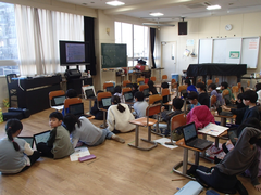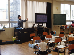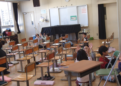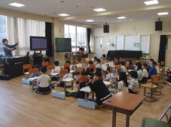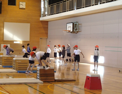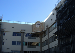 今年度は、工事期間が長く、工夫した生活が必要ですが、一部足場が取られた場所が見えています。中野島小学校の校舎で、自分は一番好きな場所である時計の周りがとても綺麗に仕上がっています。全部足場が取られるまで、もう少しの辛抱が必要です。4年生はアリーナで「とび箱」、理科は「もののあたたまり方」の学習をしていました。3年生は理科「じしゃくのふしぎ」の実験をしていました。2年生は音楽でリズム遊びを楽しんでいました。