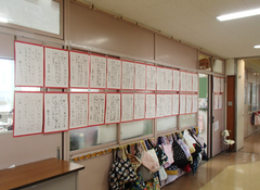 今日から何日かとてもあたたかいという予報が出ていました。天気予報通りの春のような陽気でした。校庭での体育も、いつもより動きが良く見えました。アリーナでは、4年生が跳び箱運動をしていました。書き初めをしている学年が多かったです。3年生は「友だち」、5年生は「新しい風」です。今日の給食は「ごはん・高野豆腐のそぼろごはん・白菜スープ・伊予柑・牛乳」です。給食時間には、放送で表彰式を行いました。「社会科作品展」「多摩区防火ポスターコンクール」「税の標語コンクール」「科学作品展」の受賞者です。23日も表彰式があります。学校で表彰されなくても、野球・サッカー・一輪車・空手・柔道など、色々な分野で活躍している子も多いと思います。それぞれの子どもたちが好きなことに一生懸命に取り組んでいることを応援していきたいです。3年生は社会科で販売の仕事「スーパーマーケット」の学習をしています。家庭で保護者に聞き取ったことがたくさん書かれており、充実した学習の様子がうかがえます。5年生は図工「版で広がるわたしの思い」は、多色刷のようなので、みんなの完成が楽しみです。