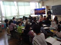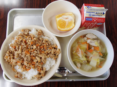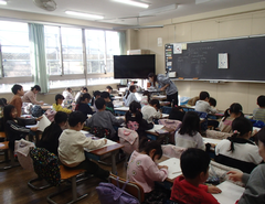 今日は、2年生と4年生の読み聞かせの日でした。いつもありがとうございます。1クラスは先生が読み聞かせを行っていました。1年生は、英語活動の日でした。たこあげの準備をして、完成したクラスは、校庭でたこをあげていました。2年生は「おはなしの絵」と音楽では「旋律づくり」をギガ端末を使って行っていました。3年生は図工「顔を出したらなんだかワクワク」に取り組んでいました。4年生はとび箱運動と英語では、交流してスタンプをもらう活動をしていました。とても楽しそうでした。5年生は国語で「やなせたかし」の生涯について学んでいました。図工の版画では、彫りに集中していました。6年生は書き初めを書いていました。今日の給食は「麦ごはん・中華丼・わかめとコーンのスープ・牛乳」です。