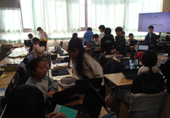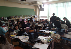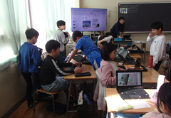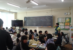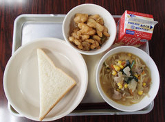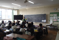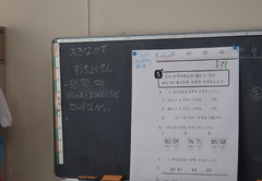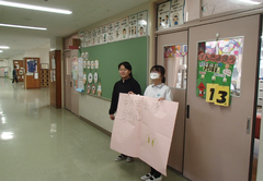 色々なお店では、正月関係の飾りが終わってからは、恵方巻きや豆まきのの飾りになり季節の移り変わりを感じます。コンビニが一番、季節を先取りした飾りがはやいように思います。職員玄関前も節分の飾りになっています。校庭側の足場も少しずつ撤去され、見通しがよくなっています。今日の給食は「はちみつ食パン・味噌ラーメン・鶏肉と大豆のピリ辛和え・牛乳」です。今日から「あいさつ運動」が始まりました。今日は6年1組でした。中休みは、「中小救急隊」の子どもたちが廊下の歩行について、危険がないように見守ってくれました。1年生は算数で大きな数の学習をしていました。だんだん扱う数が大きくなってます。2年生音楽で鍵盤ハーミニカとグロッケンの演奏を学習していました。3年生は明日、スーパーで見学に行くので、その準備を進めていました。4年生は、小田原城について、調べて交流していました。ギガ端末を見ながら話し合っていました。5年生は英語で、Who is your hero?のめあてで学習していました。みんなのヒーローを知りたくなりました。
