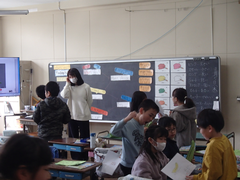 今日は立春、暦の上では春ですが、まだまだ寒さの厳しい日が続きます。今年度最後の朝会がアリーナで行われました。保健室の掲示板が「笑顔のひみつ」になりました。中休みには、たくさんの子どもが集まっていました。今日の給食は「食パン・湘南ゴールドジャム・ラザニア・ひじきのサラダ・牛乳」です。4年生は英語で、「This is my day」の絵をみんなで相談しながら並べていました。6年生は「未来のわたし」です。進んでいる子は、色塗りに入っていました。みんな集中して取り組んでいました。1年生は算数「順番の数の計算」の学習をしていました。文章題に「5番目」と「3人」という数字が出てくるので、式を立てるのに迷います。みんなで考えていました。2年生は音楽で「こぐまの2月」にギガ端末でリズム演奏を作っていました。自信作なのか、私のところに来て、「聴いて、聴いて」と言って、リズム演奏を聴かせてくれました。3年生は「大好き中野島」の発表の準備、リハーサルをしていました。授業参観、当日が楽しみです。校庭では1年生が「的あてゲーム、6年生が「ハードル走」をしていました。アリーナでは4年生が「ソフトバレー」をしていました。ラリーが続くようになり、成長を感じました。