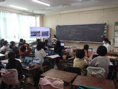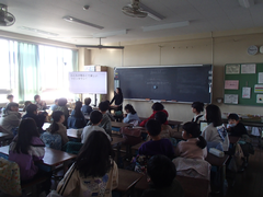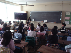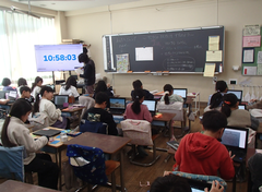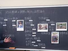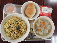 今日の給食は「カレークリームスパゲッティ・ベジタブルスープ・ミニロールパン・ピーチゼリー・牛乳」です。今日は採用3年目の先生の研究授業がありました。他校からたくさんの採用3年目の先生が来校して、研修しました。体育のソフトバレーの授業を公開しました。欠席が多くなりました。来週1週間、動向を見守りたいと思います。保健室の掲示が「笑顔のひみつ」に「授業中の姿勢大丈夫?」が加わりました。良い姿勢、意識したいですね。3年生は来週の授業参観の発表会に向け、準備を進めていました。習字は「にじ」の清書をしていました。英語の教室の前に大きな絵が貼られていました。たぶん、6年生の作品が掲示されるのではと予想しました。楽しみです。1年生は学級会で係のことを話し合っていました。6年生は社会科で「カカオを生活のために収穫して、収入を得て暮らしている子ども」を話題に、国際社会と日本の関わりについて考えていました。