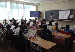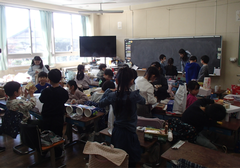 今日の給食は「ごはん・竹輪の蒲焼・豚汁・白菜のおかか和え・牛乳」です。今日は、入学説明会がありました。特別活動室で10時から行いました。122名4クラスの予定です。3年生と5年生が英語の学習をしていました。3年生はクイズ、5年生は自分のあこがれの人の発表、楽しく活動していました。3年生の図工「顔を出したらなんだかワクワク」はもう少しで、みんな完成しそうです。4年生は社会科で、文化財として「小田原城」を取り上げ学習を進めていました。2年生は生活科「あしたへジャンブ」の学習に取り組んでいました。6年生は、家庭科「一食分の献立」を考える学習、社会科「国際社会において我が国が果たしている役割を考え、表現する学習」、体育「ソフトバレー」に取り組んでいましした。みんな落ち着いて学習に取り組んでいました。