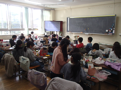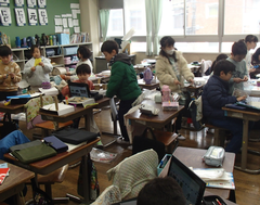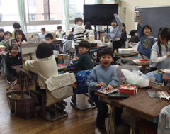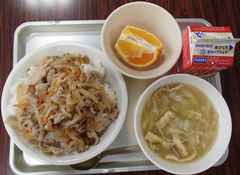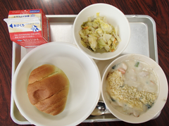 今日の給食は「麦ごはん・ハヤシライス・白菜としめじのスープ煮・発酵乳」です。3年生は民家園の社会科見学に出発しました。各学年、書き初め展の作品を外した後は、図工の作品が掲示されています。5年生は版画作品、2年生「お話から生まれたよ」、1年生「お話大好き」の今日の一品、1年生「プール楽しくて気持ちいいな」「みんなでピアノ」見ているだけで元気になる作品です。2年生「おんなじだ」「落ち葉をばらまいているがまくん」、元の作品をよく理解して描いた作品です。おもしろいです。5年生「青空にうつるユリ」「空中に舞う桜の花びら」丁寧で繊細な作品です。感動します。4年生はアリーナでソフトバレーボール、多目では、総合と社会科のグループ学習をしていました。6年生は調理実習です。みんな協力して仲良く活動していました。出来上がりを見たかったです。