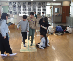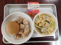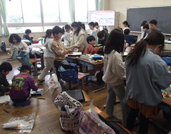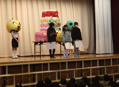 職員玄関にひなまつりの飾りがありました。もうすぐ3月、校舎内にも「ありがとう」「おめでとう」の文字が目立つようになりました。3月なると、卒業式を中心に、学校が動いていきます。慌ただしさに負けず、一人ひとりが学年の学びのまとめをしっかりやってほしいです。今日は自校献立です。味噌ラーメンとからあげは子どもたちに人気のメニューです。1年生は算数のまとめと生活科「もうすぐ2年生」で、1年間の自分の成長をまとめていました。音楽では、ギガ端末でリズムづくりをしていました。学びがどんどん進んでいますね。3年生は国語「ありの行列」の読み取りを協力しながら進めていました。」図工では「マグネットマジック」を作り始めていました。磁石を使った楽しい作品になりそうです。4年生は総合「ゆるパラリンピック」で交流していました。サポート級は色々な物の重さを友だちと協力して量っていました。6年生はアリーナでソフトバレーボールです。声を掛け合ってラリーを続けていました。図工「未来の私」、全員揃うと壮観ですね。きょうの一品は「クリエイター」と「ペンギンの飼育員」です。細かい所まで、気を配って作りましたね。頑張りました。