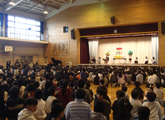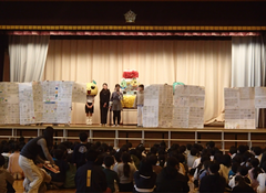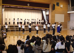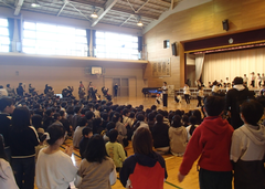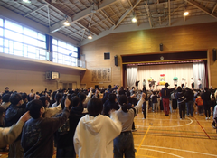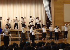 今日は5校時に授業参観があります。多数のご来校お待ちしています。今日の給食は「麦ごはん・肉丼・味噌汁・デコポン・牛乳」です。8時30分からアリーナで「中小お誕生日集会」がありました。子どもたち中心に」楽しいクイズとダンスで、中野島小学校の65歳をお祝いしました。中休みには、アリーナでサポートダンスがありました。たくさんの子どもたちが見に来て、友だちを応援していました。