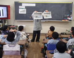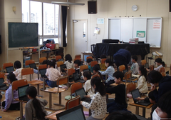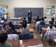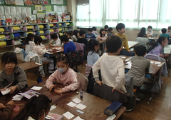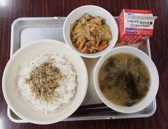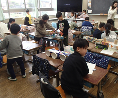 今日の給食は「発芽米ごはん・ふりかけ・味噌汁・カレー肉じゃが・牛乳」です。今日は一転寒い朝でしたが、2年生が元気に一緒にあいさつ運動をしてくれました。1年生の初任の先生が研究授業をしました。たくさんの先生が参観にきました。図工は「はこでつくったよ」です。自信作なのか「見て!見て!」アピールしていました。2年生は生活科「あしたへジャンプ」がもうすぐ完成しそうです。3年生へジャンプできそうです。養護教諭の先生が目の健康についての授業をしていました。3年生は図工「マグネットマジック」に取り組んでいました。国語はありの行列です。グループで頭を働かせ頑張っていました。5年生は家庭科でミシンの使い方を学んでいました。体育は「表現運動」を特別活動室で行っていました。6年生は家庭科で一食分の献立をグループで話し合い決めていました。総合では、1年生を招待して交流していました。色々な体験をさせてもらい、1年生はとても満足そうでした。中休みは高学年が八の字跳びに挑戦していました。3分間で「跳んでる人数✕跳んだ回数」でクラスごとに競い合います。