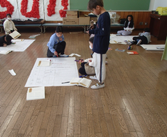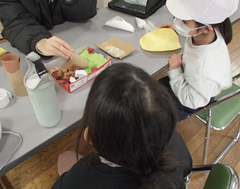今日の給食は「ロールパン・ポテトグラタン・キャベツのスープ煮・牛乳」です。校舎の足場がもうすぐなくなります。資材も片付けられて長い工事もまもなく終了です。今日は学校運営協議会があります。」1年間の振り返り、学校評価アンケートを話題に中野島小学校の子どもたちについて話し合う予定です。2年生は図工「ともだちハウス」、のびのびと表現していて、みんな楽しそうでした。3年生は英語の日でした。英語の読み聞かせを聞いて、どんな話だったかを交流していました。4年生は社会科と総合の学習、総合は「やさしいゲーム、遊び」です。だれでもできるゲーム、遊びを考え、シュミレーションしていました。6年生はソフトバレーボールと図工「未来の私」です。今日の一品は「夢のパン屋」「世界で活躍するサッカー選手」「野球選手」です。自分の思いがつまった作品です。