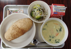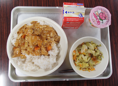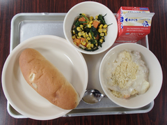3月になりました。11日は中野島中学校の卒業式、19日は中野島小学校の卒業式です。おめでとうの飾りや英語のまとめでは、「私の将来の夢」を英語で記したものが掲示されていました。3年生は校庭でサッカーをしていました。6年生は総合の交流を楽しんでいました。欠席の状況が改善され、インフルエンザの感染数もわずかになりました。このまま修了式まで続くことを願っています。横浜DeNAベイスターズからいただいた帽子をかぶっているクラスがあったので写真を撮りました。全員にプレゼントされました。今日の給食は「麦ごはん・チキンストロガノフ・キャベツのスープ煮・ピーチゼリー・牛乳」です。