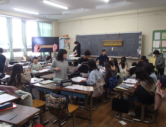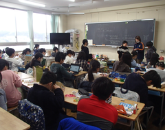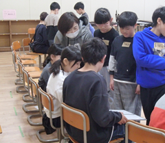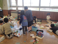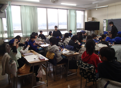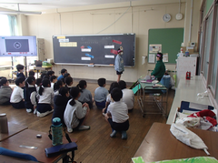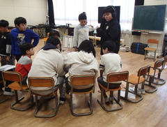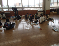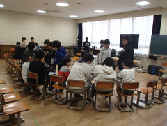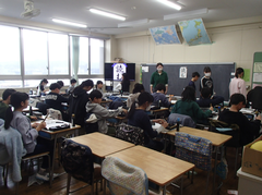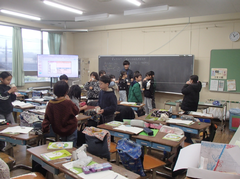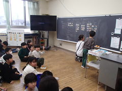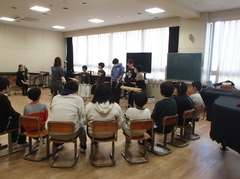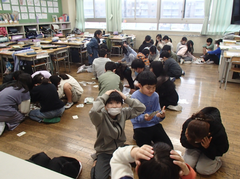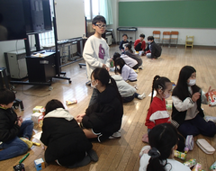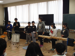 昨日は、卒業式会場のアリーナに近い、階段、廊下のワックスがけを行いました。明日は、放課後、椅子を一回全部片付けて、アリーナのワックスがけをします。学校全体で卒業式の準備をしています。今日の給食は「ぶどうぱん・ポテトグラタン・野菜ソテー・牛乳」です。サポート級は音楽の体験活動をしていました。3つのグループに分かれ、合奏を披露しました。メンバー紹介も演奏を素敵でした。2年生は生活科「あしたへジャンプ」はほぼ全員完成したので、交流しています。3年生は英語の劇を発表していました。それぞれのグループのアレンジが面白かったです。4年生は理科「水のすがた」のまとめをしていました。5年生はミシンの使い方の学習をしていました。