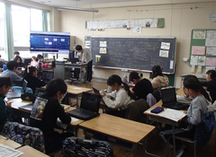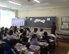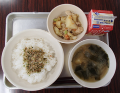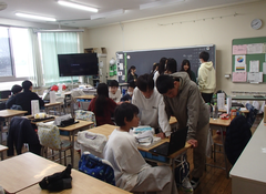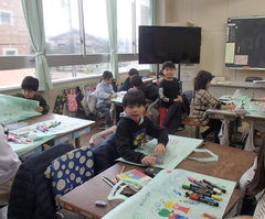 昼になり、天気が回復して青空になりました。昨日、今日の朝は雨が降り寒さが厳しかったですね。今日の給食は「ごはん・ふりかけ・味噌汁・鳥じゃが・牛乳」です。2年生は図工「つないでつるして」です。教室がたいへんなことになっていました。とても楽しそうに活動していました。終わったらみんなで教室を元通りに綺麗にしました。1年生は国語「ずうっとずっとだいすきだよ」を学習していました。1年生がとても身近に感じることができるお話です。3年生と4年生は社会科「川崎市の移り変わり」と「地域の発展に尽くした先人」の学習です。6年生は卒業式の練習をしていました。