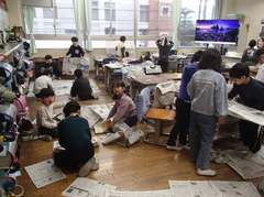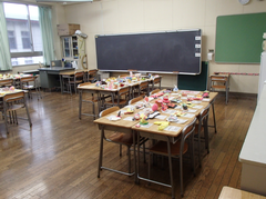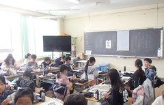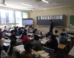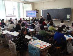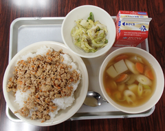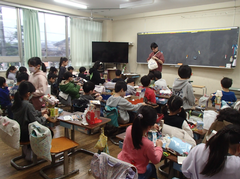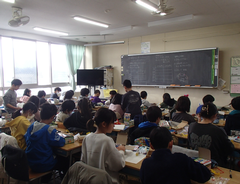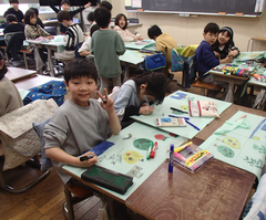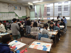 今日の給食は「そぼろごはん・けんちん汁・塩ダレキャベツ・牛乳」です。4年生の算数は「立体」の学習をお菓子の箱を使って学習をしていました。国語は「資料の工夫について考えよう」です。3年生は社会科「川崎市の暮らしの移り変わり」です。2年生は音楽でリズムに合わせてテニスボールをついていました。とても楽しそうでした。3年生は図工「マグネットマジック」です。5年生は習字「飛行」と図工「のぞいてみると」です。図工は、箱に自分の好きな空間を作り、小さな穴から覗く作品です。穴から覗くと不思議な世界が見えて楽しいです。2年生は図工「つないでつるして」教室が遊び場に変わります。英語は6年生は英語の映画を視聴、3年生は劇の練習をしていました。給食時間は多摩区造形展の表彰を行いました。