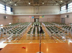 11日は中野島中学校の卒業式があります。そして、本校は13日(金)卒業式の予行練習になっています。今日の給食は「きなこパン・カレーシチュー・ボイル野菜・和風ドレッシング・牛乳」です。先週の金曜日に教職員が心をこめてアリーナにワックスをかけました。今日は6年生が練習をしていました。椅子も式と同じように配置しました。4年生は習字「白馬」、社会科では、地域の発展に尽くした先人について学習しました。低い所から高い所に水を引くという知恵と作業は並大抵のことではなかったのでしょう。作物には大量の水が必要です。どうやって水を確保したのかを学習していきます。3年生は社会科「川崎市の移り変わり」の学習、国語では、「モチモチの木」の話し合い活動をしていました。広々した校庭で3学年が体育をしていました。