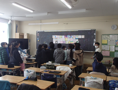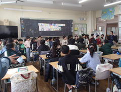 今日は寒い1日になりました。朝は雪がちらつきました。アリーナで緊張した面持ちで練習した6年生が教室に戻ると素敵なサプライズがありました。1年生が黒板に感謝のメッセージを書き、教室で感謝の呼びかけをしてくれました。教室はとても温かい雰囲気に包まれました。今日の給食は「ごはん・ごま塩・春雨の中華スープ・ハンバーグの野菜あんかけ・牛乳」です。給食時間には、放送で文詩集かわさきの表彰式を行いました。2年生は持ち帰りバックを作っていました。3年生は「そろばん」の学習をしていました。5年生は理科「電流と電磁石」の学習をしていました。