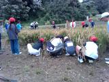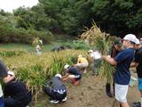 6月に田植えをした地域の田んぼで、稲刈り体験をしました。