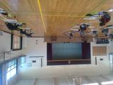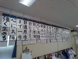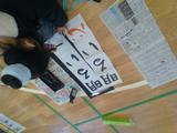 体育館で書き初めを行いました。一文字に思いを込めて、丁寧に書いていました。書いた作品は22日~28日まで展示しています。