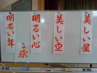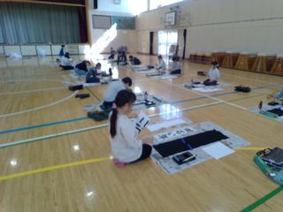 今日から、本校毎年恒例の書き初めに向けての練習が始まりました。講師は、地域のおなじみ金丸さんです。いつもありがとうございます。少し欠席者はいましたが、予定通り体育館で行いました。今回のお題は、写真の4つの言葉です。漢字とひらがなが混ざっているので、字のバランスが難しいです。子どもたちは、金丸さんの筆さばきを思い出しながら、練習していきます。中には、自分から金丸さんに声を掛けて、自分が書いた字を見てもらっている子もいました。積極性が素晴らしいです。それぞれの字に思いを込めて、紙いっぱいに表現してほしいなと思います。