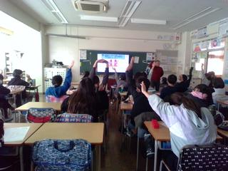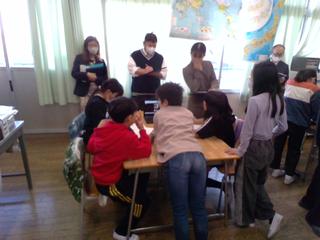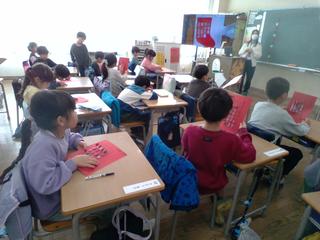今日の3、4時間目は、3年生が、韓国の方、中国の方、フィリピンの方をゲストティーチャーとしてお招きし、他国の文化に触れました。まずは、韓国の伝統的な遊びです。「チェギチャギ」という羽根のような道具「チェギ」を片足で地面に落とさないように蹴り続ける遊びや「コンギノリ」という5つの石を使い、1つの石を空中に投げ、その間に他の石を拾ったり、手の甲に乗せたりする遊び、めんこのような遊びを教えてもらいました。子どもたちは夢中になって遊んでいました。次に中国の文化や漢字のクイズ、小学校の様子、フィリピンの衣食住や学校の様子も教えていただきました。他国の文化のよさを感じられたかな。
