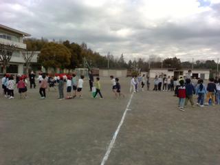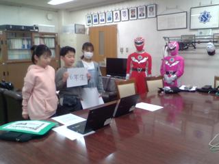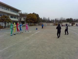 今日の中休みは、「ワルワル団とのおにごっこ」です。先週予告のあったワルワル団からの挑戦状。10日(火)の予定が雪のため、本日に延期となりました。ワルワル団が自分の仲間を増やすべく、鬼ごっこを仕掛けました。今回は、ワルワル団がハンターを従え、子どもたちを追い回します。タッチをされると「ワルワル団のアジト」に入れられてしまいます。逃げ切った子もいれば、捕まってしまった子も…。そんな時、校舎の3階から、おなじみのスクール戦隊「ニシスゲンジャー」の登場です。ニシスゲンジャーが助けに来てくれたのです。おや、ニシスゲンジャーの姿が3階から消えました。すると、ものの5秒もしないうちに、1階から現れました。ニシスゲンジャーは瞬間移動もできるのですね。登場したニシスゲンジャーは、アジトを壊し、捕まった子どもたちを解放。そして、ハンターを捕まえて6年生に戻し、最後はニシスゲビームでワルワル団をやっつけました。学年末の大活躍でした。ニシスゲンジャー、今年度もたくさんありがとう!