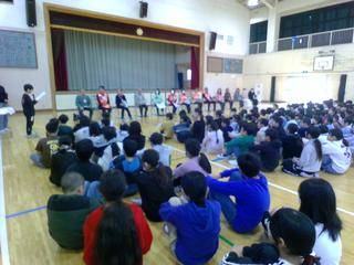 今日の4時間目は、4年生の学習発表会でした。インフルエンザの影響があり、延期して本日を迎えました。状況をご理解いただき、保護者のみなさん本当にありがとうございました。今日の4年学習発表会は2部構成で、最初は国語の学習を生かした発表です。各教室で、「習い事」など、自分たちのテーマに沿った調査活動を行い、グラフに表すなど、調査活動したことを「見える化」して表現することができました。発表も仲間と役割分担して行っていて、「練習したんだな」と思いました。発表の後は、音楽室に移動して、合奏「茶色の小びん」、合唱「チャレンジ」の発表です。2曲とも、みんなの息があっていて、とても上手でした。4月からは5年生ですね。この学校を任せていけそうで、本当に楽しみです。