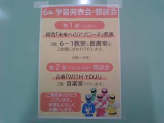 今日の5、6時間目、6年の学習発表会でした。全員の保護者の皆様にご参加いただきました。ありがとうございました。最初に子どもたちが取り組んできた総合的な学習「未来へのアプローチ」の発表です。子どもたち一人一人、自分が持っている夢についての現状とそれをつかむまでに大切にしたいことなどについて、手作りのスライドを使って発表することができました。保護者の皆様も感想をおっしゃっていただき、ありがとうございました。次は音楽室に移動して、合奏の発表だったのですが、その前にサプライズで、この一年間の子どもたちの活躍の様子を写したスライドショー、そして子どもたちから保護者の皆様への感謝の手紙の贈呈もありました。見ている私たち教職員も胸がいっぱいになりました。そしてエンディングはゆずの「with you」の合奏です。素敵な演奏でした。みんなの気持ち伝わりました。
