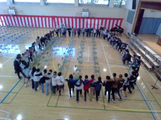 卒業式まで、あと1週間。今日の午前中は、5、6年生が卒業式の予行練習を行いました。もう泣きそうになりました。その後、体育館に5、6年生がそのまま残り、「最高学年引き継ぎ式」を行いました。6年生の企画です。6年生の進行のもと、6年生から5年生へ「最高学年のバトン」が引き継がれました。そして、6年生から先日の学習発表会で披露した「with you」の合奏・合唱のプレゼントもありました。それを受けた5年生からのメッセージも心がこもっていて、感動し涙しました。最後は5、6年生が円陣を組んで、気持ちを一つにしました。子どもたちのあったかい心も引き継がれたようです。