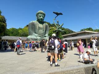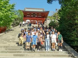 今日は、6年生と一日鎌倉で過ごしました。社会科の校外学習です。子どもたちはこれまでに学習したことをいかして、神奈川県内で歴史上唯一政治の中心地となった鎌倉を訪れ、鎌倉という地を体感しました。バスの車内で聞いてみると、鎌倉に行ったことがない子どもたちがほとんどで、少し驚きました。車内では、私たちの町や菅薬師堂などに大きく関わりのある稲毛三郎重成と源頼朝の関係についての話をしました。建長寺は一部工事の場所もありましたが、木造の建物が印象的でした。裏手から半僧坊に上がりましたが、子どもたちはその険しさに鎌倉の地形を体感できたようです。鶴岡八幡宮では実行委員の子どもたちの説明もあり、観光客も多く、鎌倉の中心地であることが実感できました。高徳院では、鎌倉大仏を目の前に「想像していたより大きかった」と話していた子もいました。鎌倉の地形や寺社の多さに子どもたちは何を感じたのでしょう。今後の学習の展開も楽しみです。